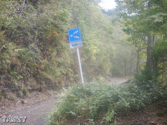 この標識のあたりから沢に降ります。