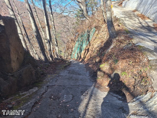 滝見屋さんの駐車場まで来ました。この先は下っていきます。